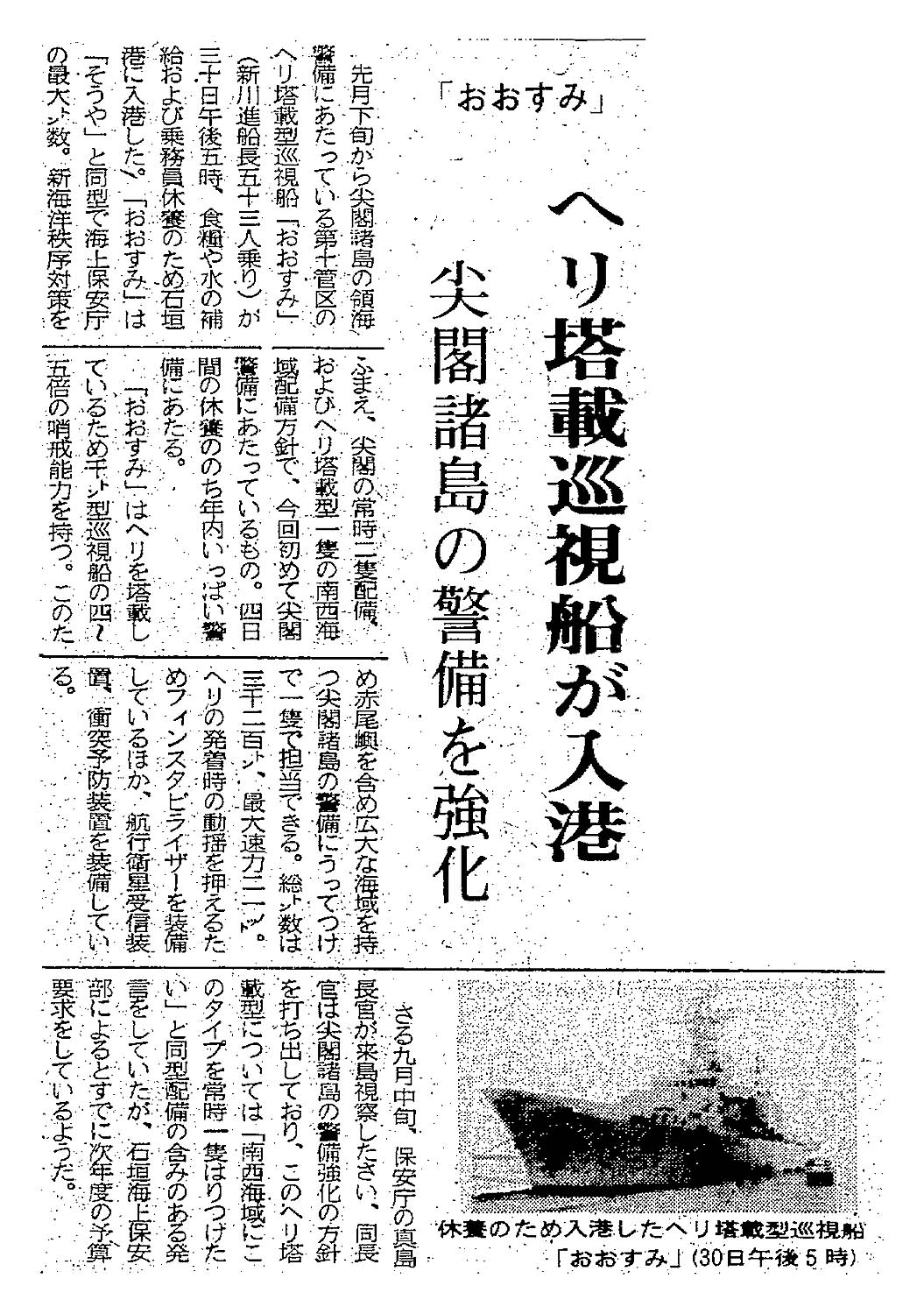 > 「おおすみ」/ヘリ搭載巡視船が入港/尖閣諸島の警備を強化: