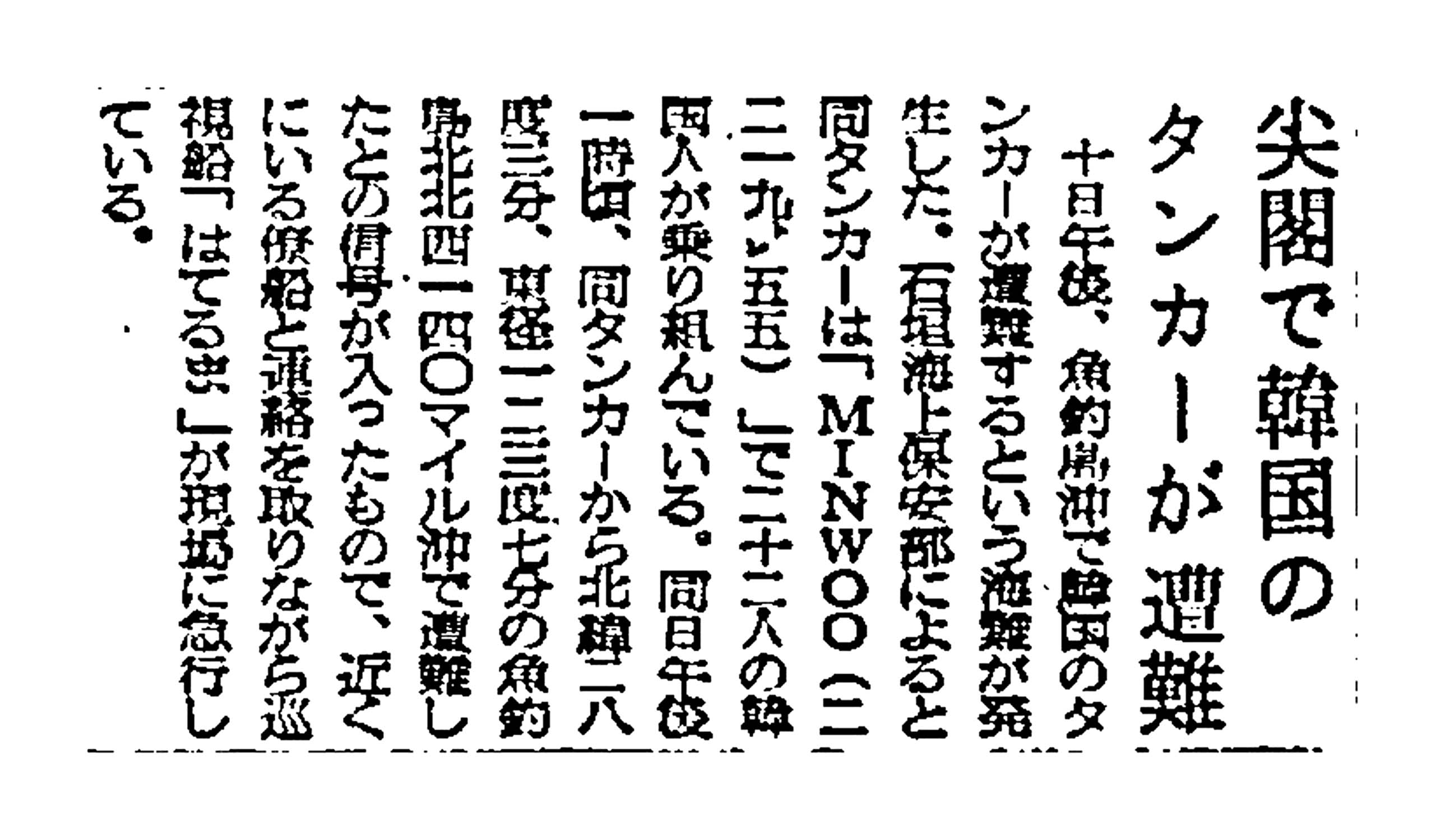 > 尖閣で韓国のタンカーが遭難: