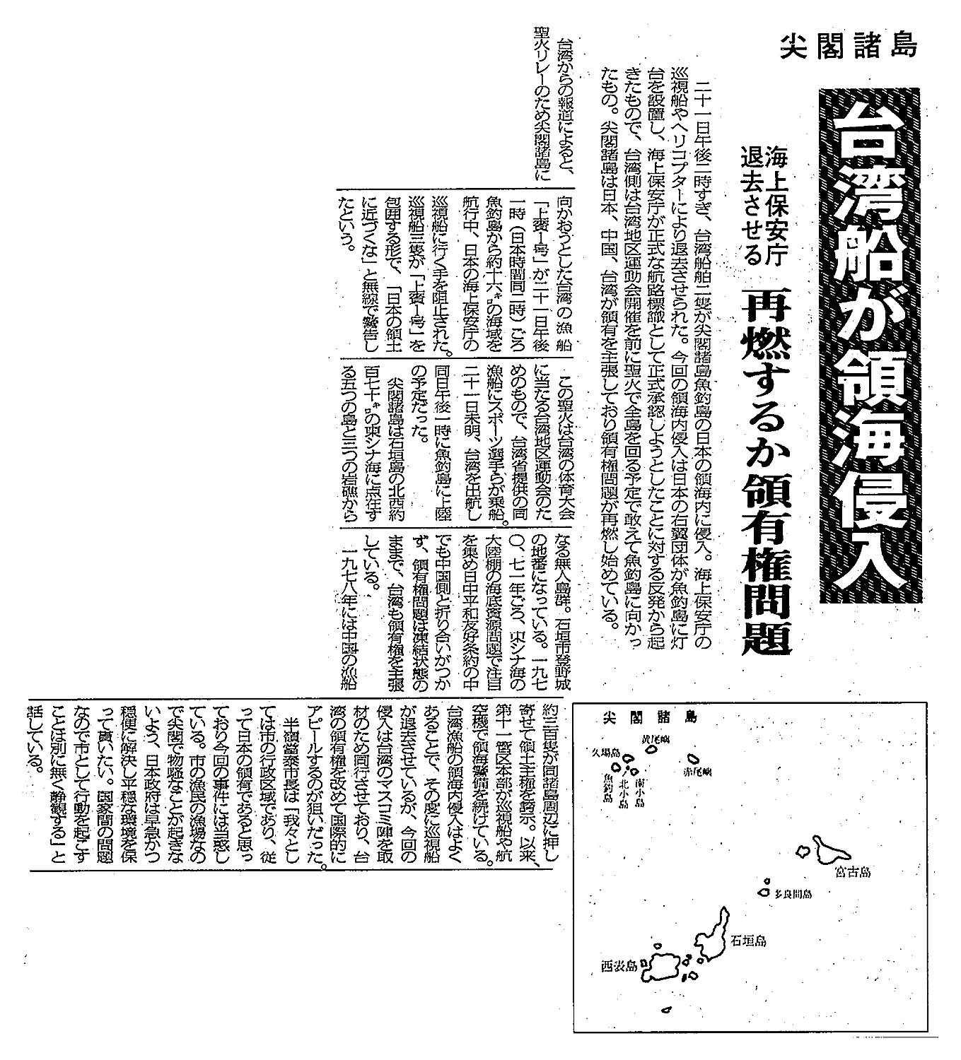 > 尖閣諸島/台湾船が領海侵入/海上保安庁退去させる/再然するか領有権問題: