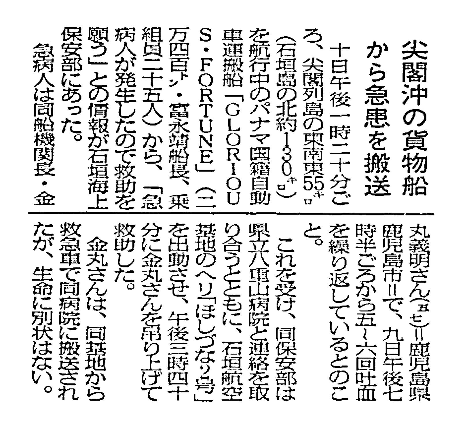 > 尖閣沖の貨物船から急患を搬送: