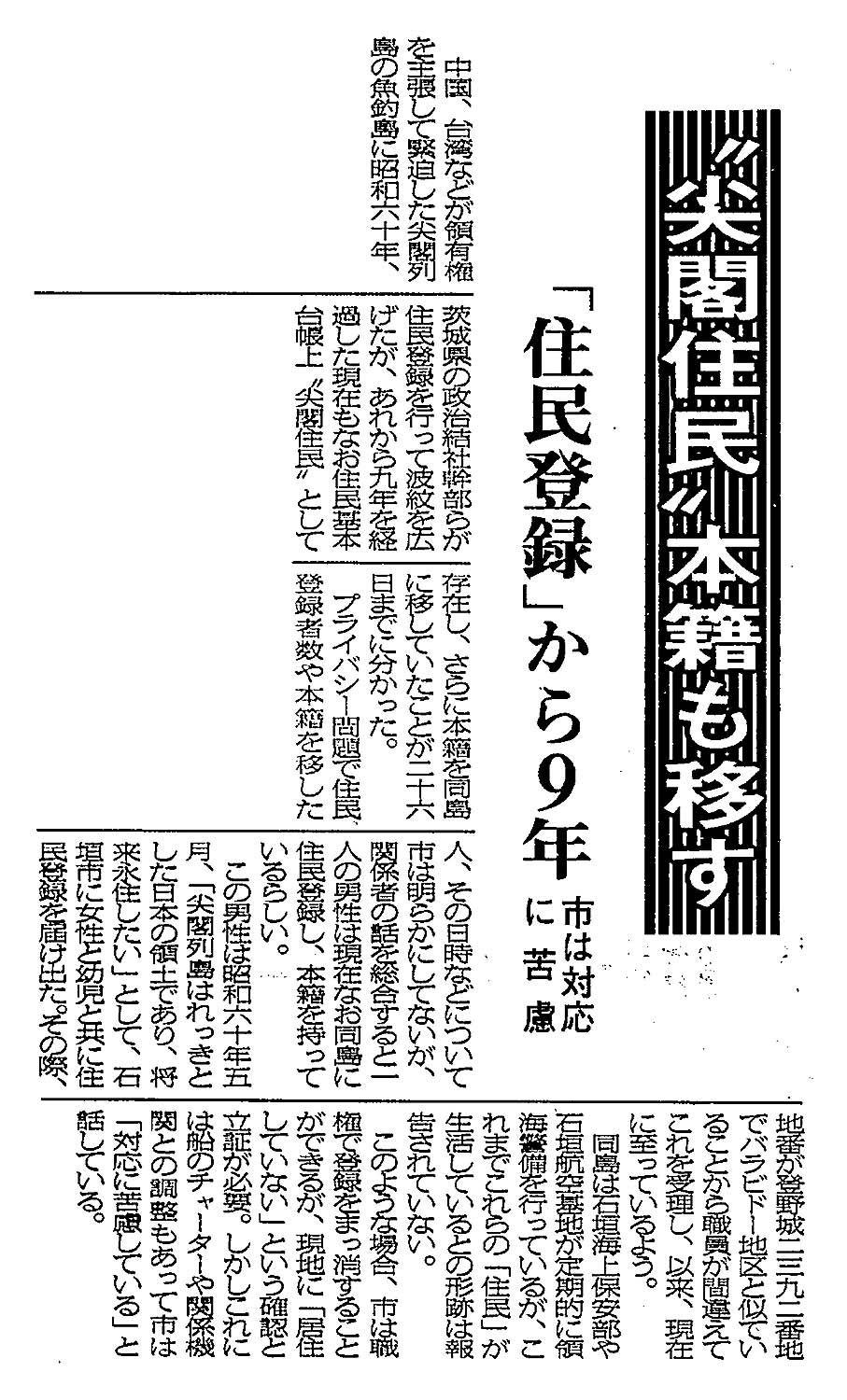 > ”尖閣住民”本籍も移す/「住民登録」から9年 市は対応に苦慮: