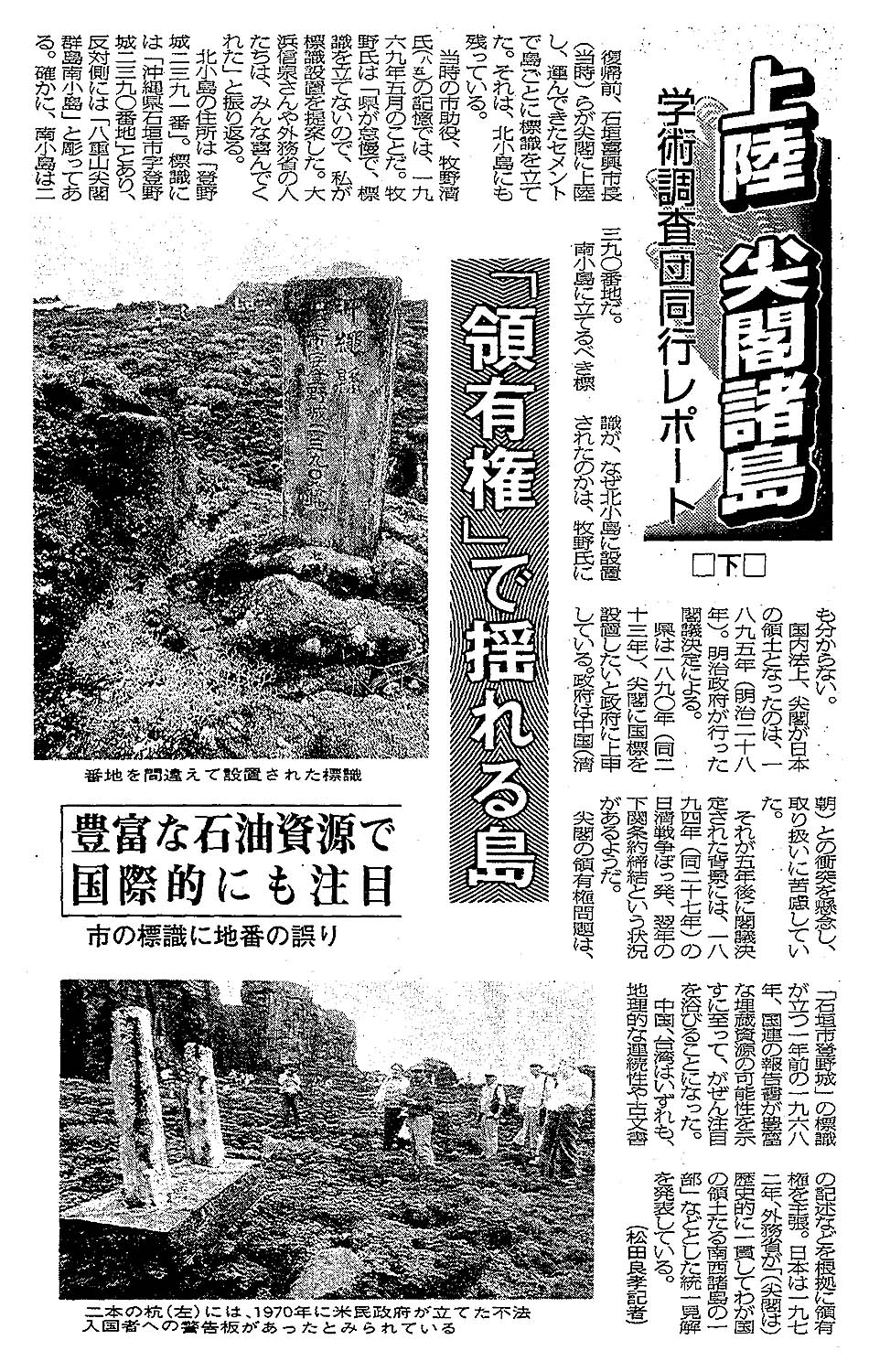 > 学術調査団同行レポート<上陸 尖閣諸島>(下)領有権で搖れる島/豊富な背旧資源で国際的にも注目: