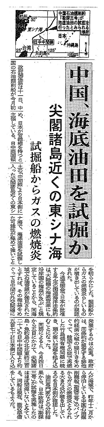 > 中国、海底油田を試掘か/尖閣諸島近くの東シナ海/尖閣諸島近くの東シナ海/試掘船からガスの燃焼炎: