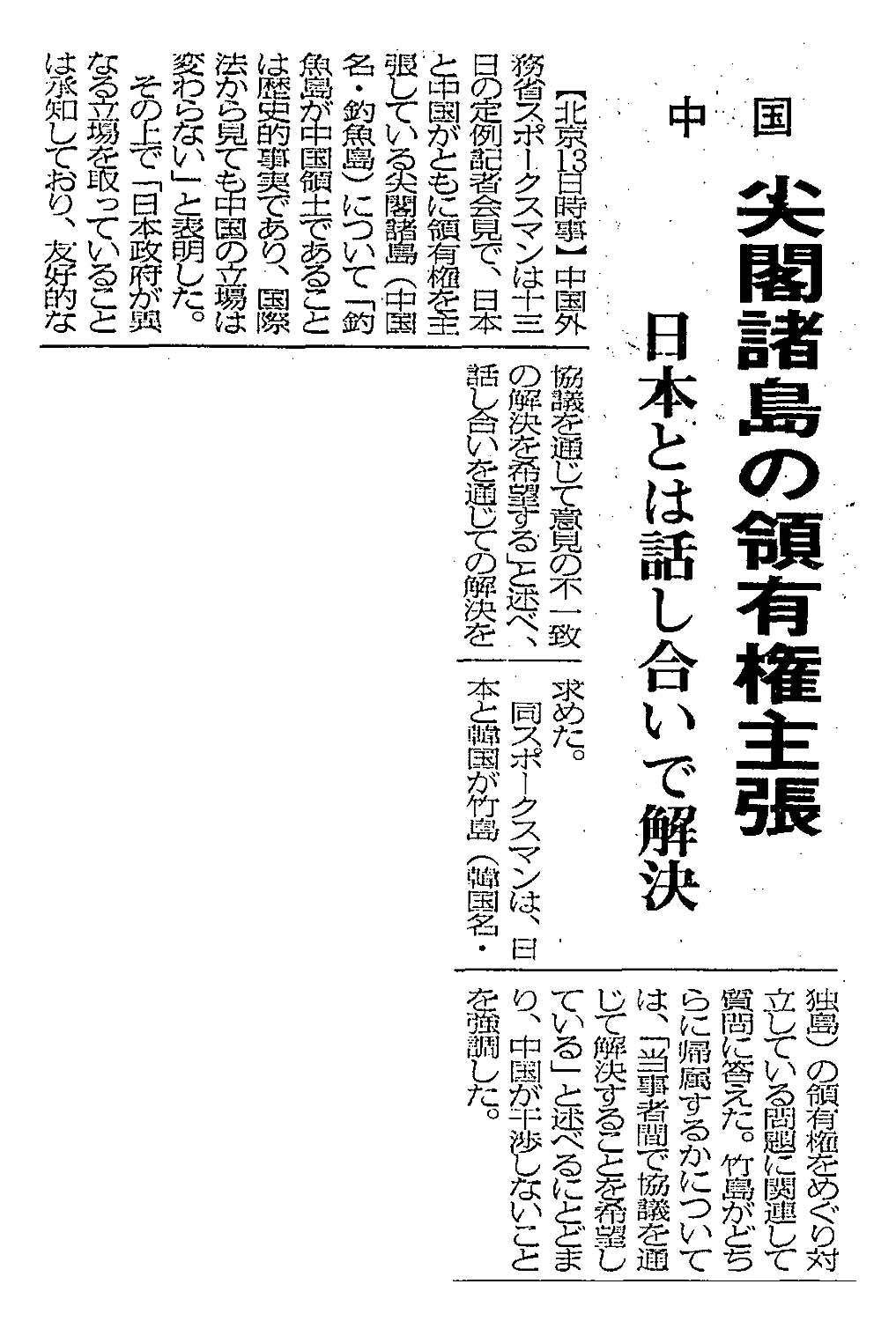 > 中国/尖閣諸島の領有権主張/日本とは話し合いで解決: