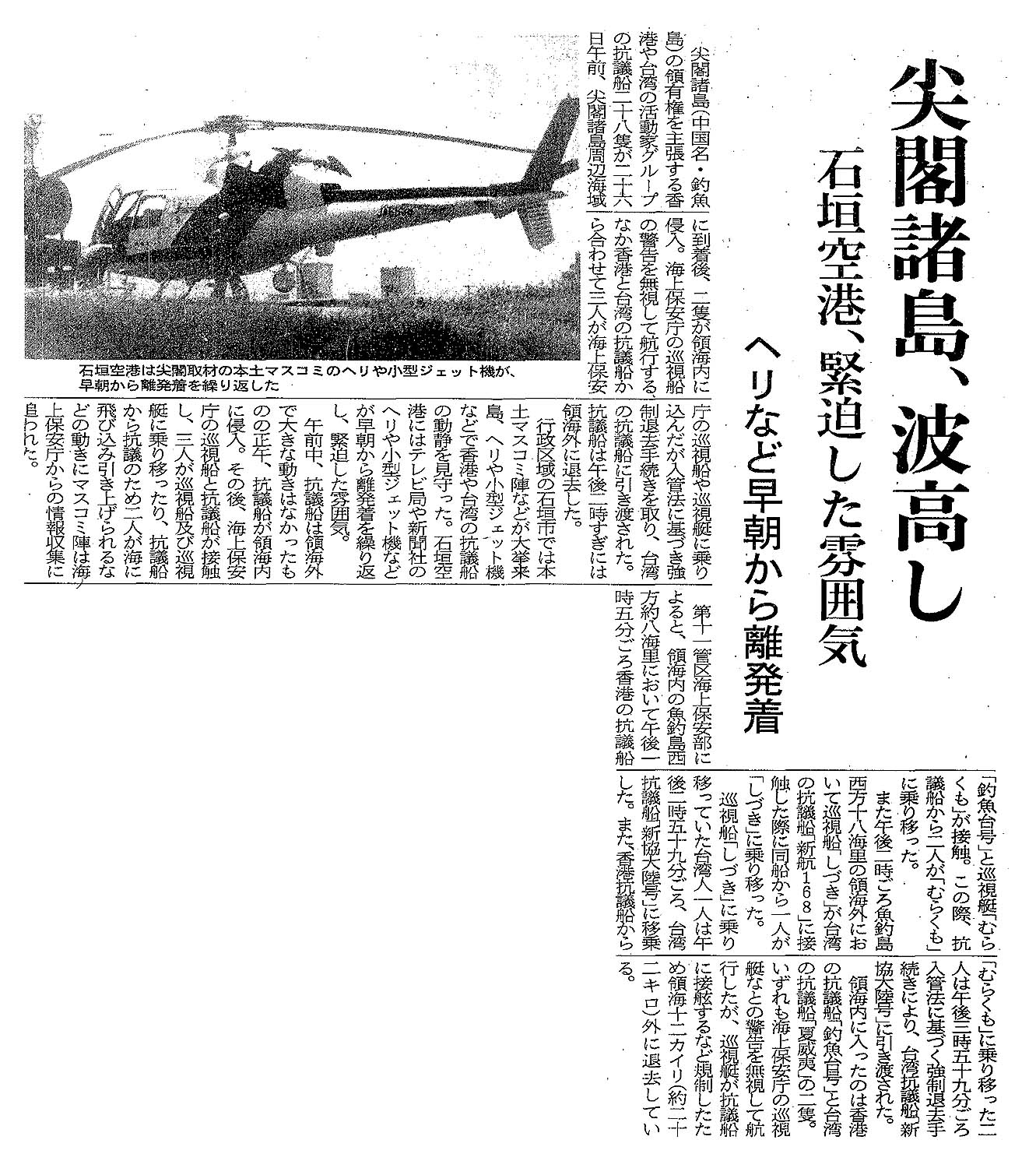 > 尖閣諸島、波高し/石垣空港、緊迫した雰囲気/ヘリなど早朝から離発着: