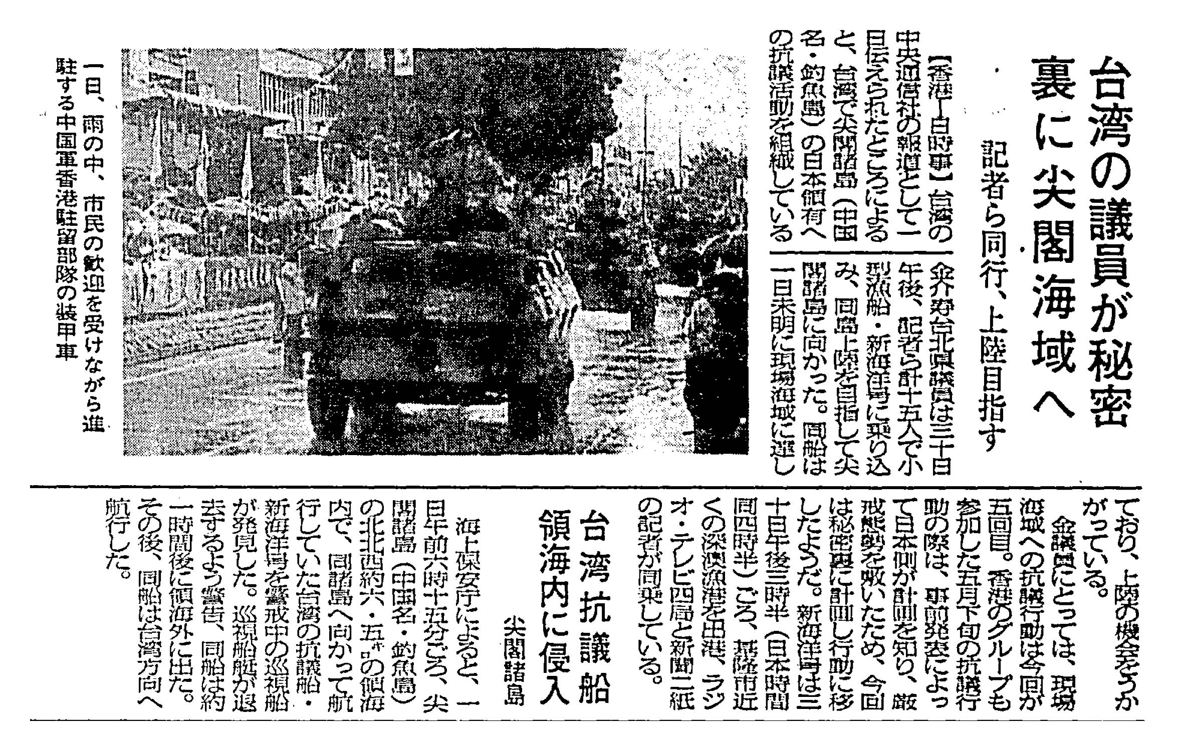 > 台湾の議員が秘密裏に尖閣海域へ/記者ら同行、上陸目指す: