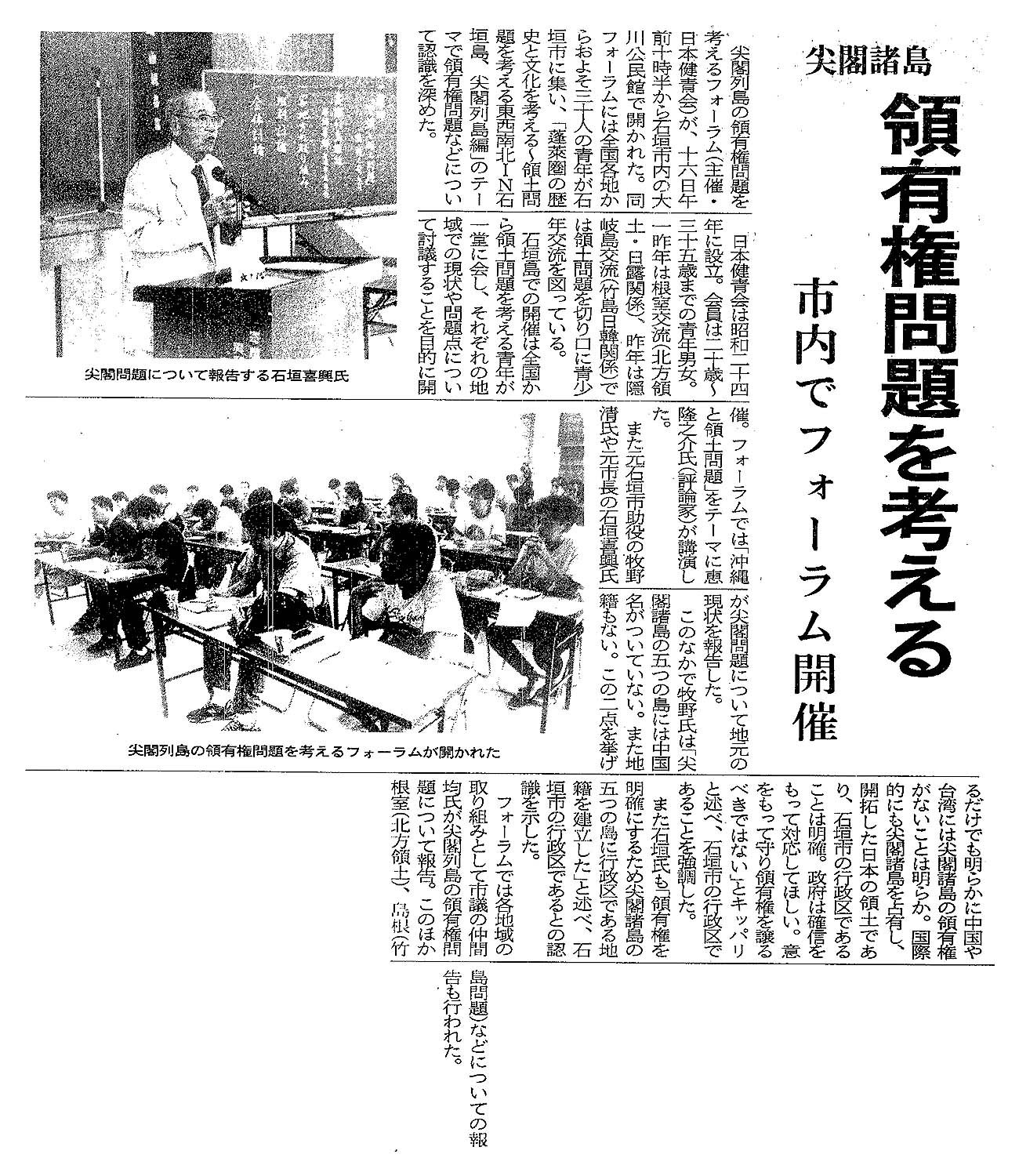 尖閣諸島 領有権問題を考える/市内でフォーラム開催