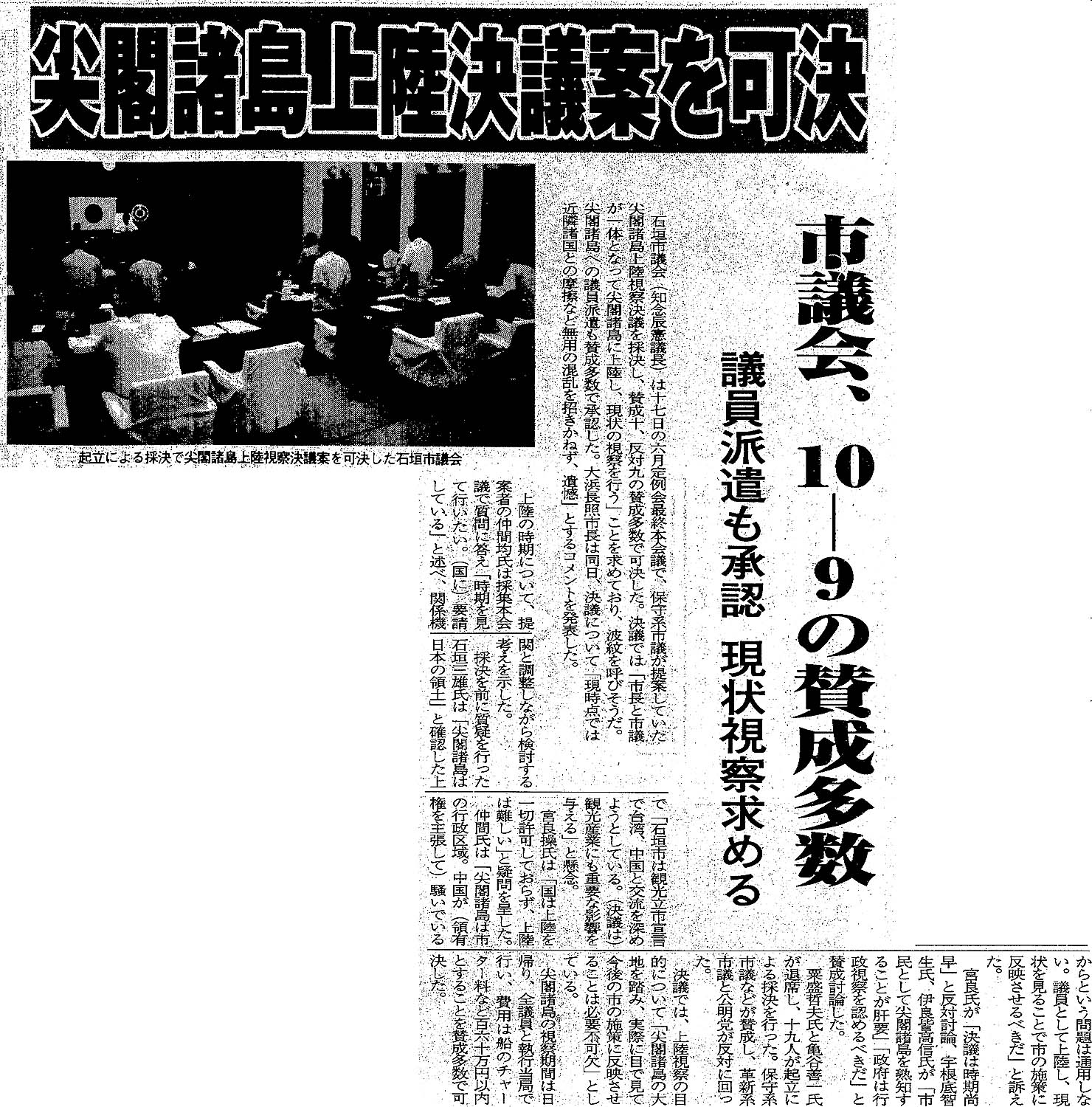 > 尖閣諸島上陸決議案を可決/市議会、10-9の賛成多数/議員派遣も承認 現状視察求める: