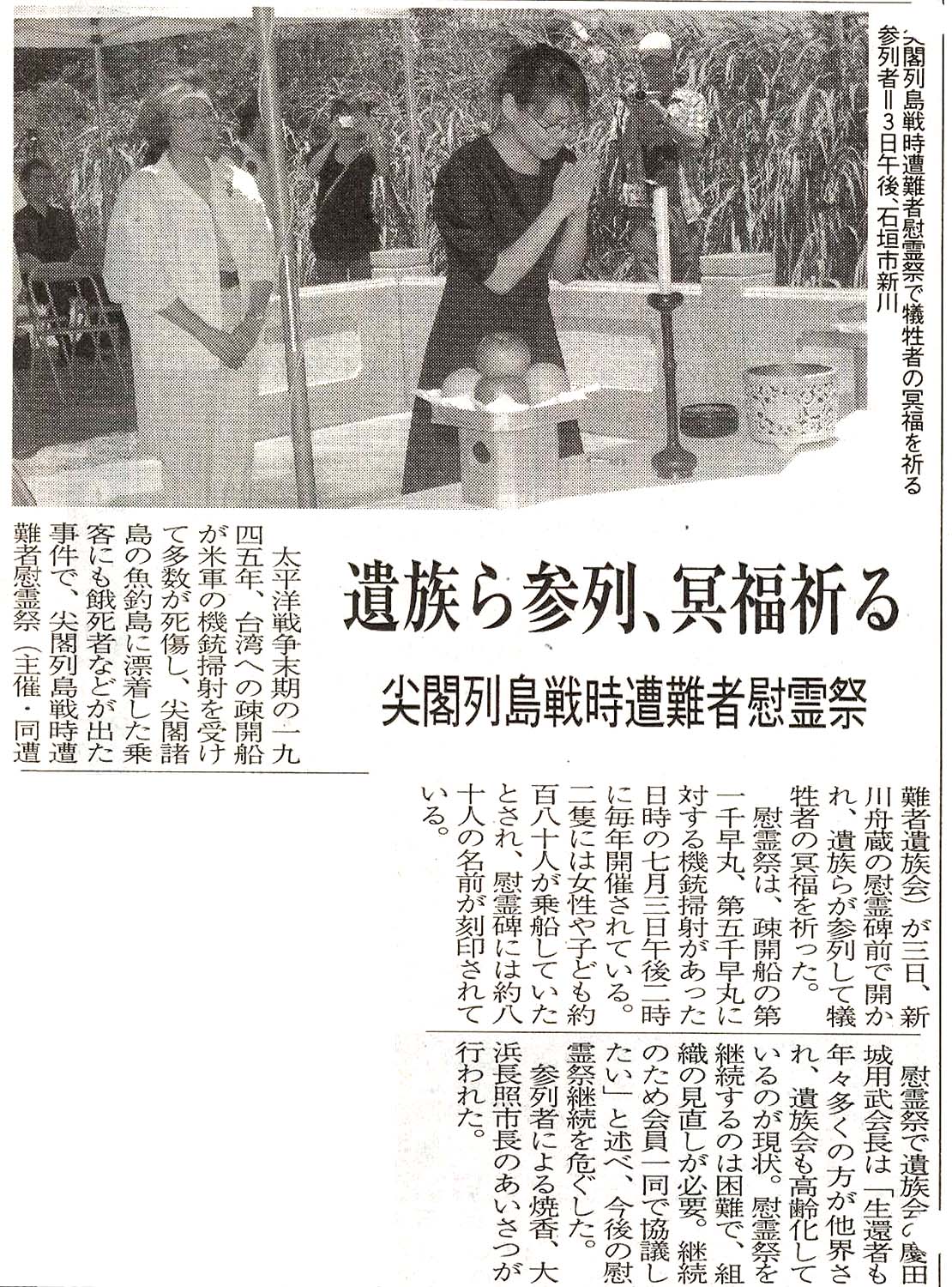 > 遺族らが参列、冥福を祈る/尖閣列島戦時遭難者慰霊祭:
