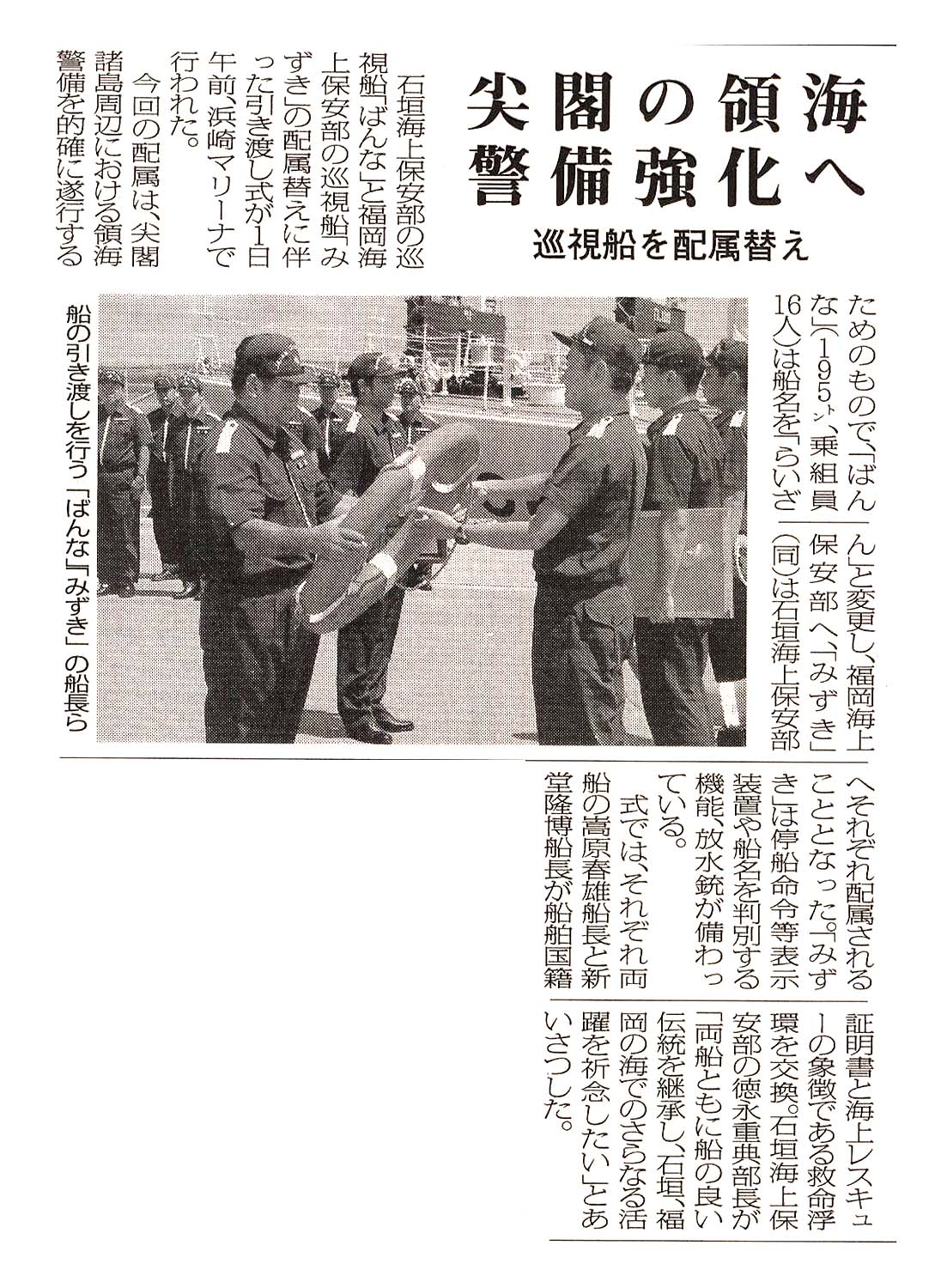 > 尖閣の領海警備強化へ/巡視船を配属替え: