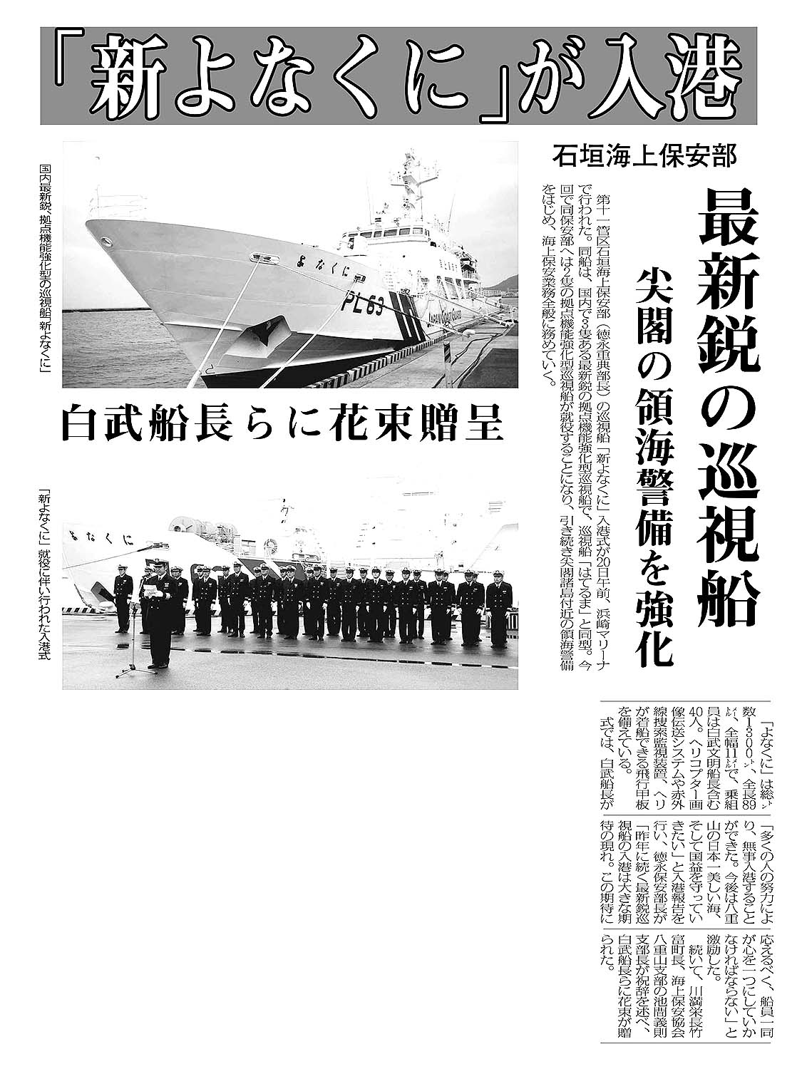 > 「新よなくに」が入港/最神経の巡視船/尖閣の領海警備を強化/石垣海上保安部: