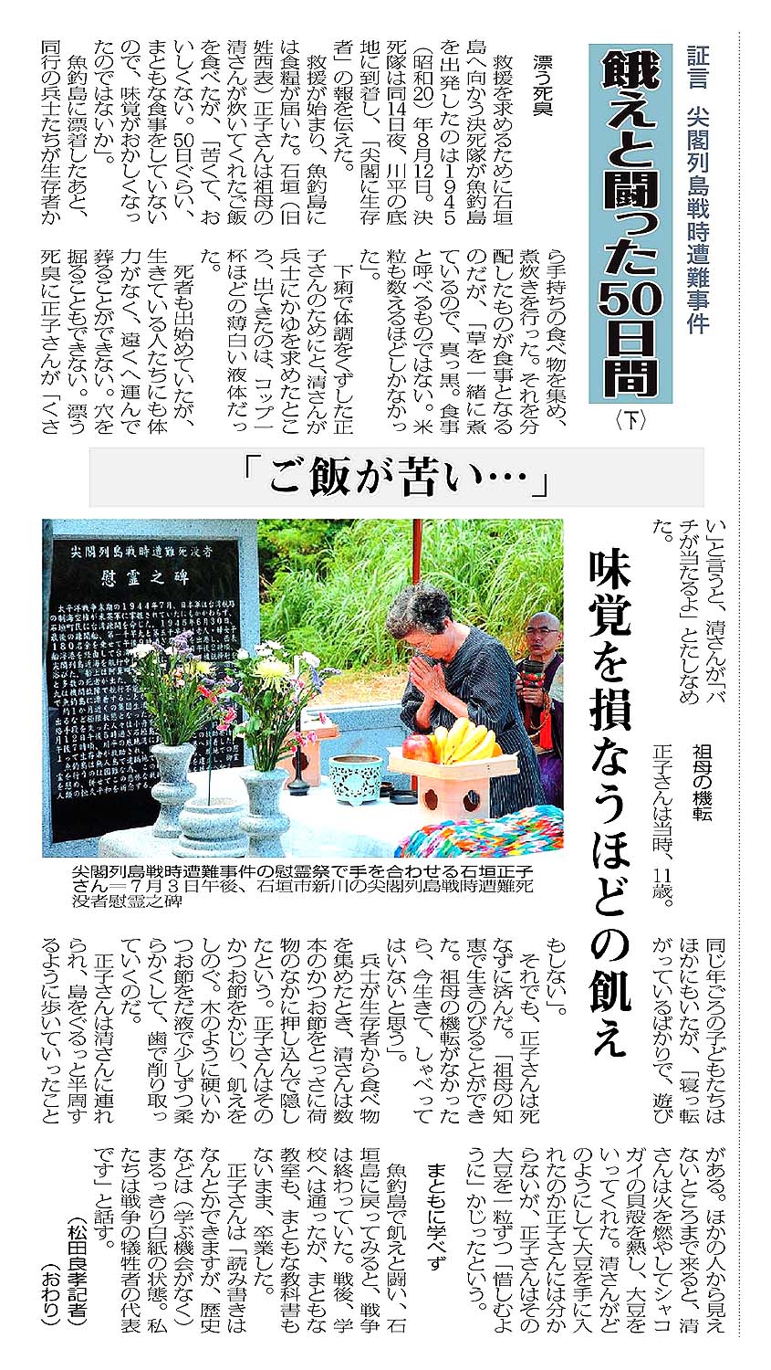 証言 尖閣列島戦時遭難事件/鍛えと闘った50日間(下)/「ご飯が苦い・・・」/味覚を損なうほどの飢え