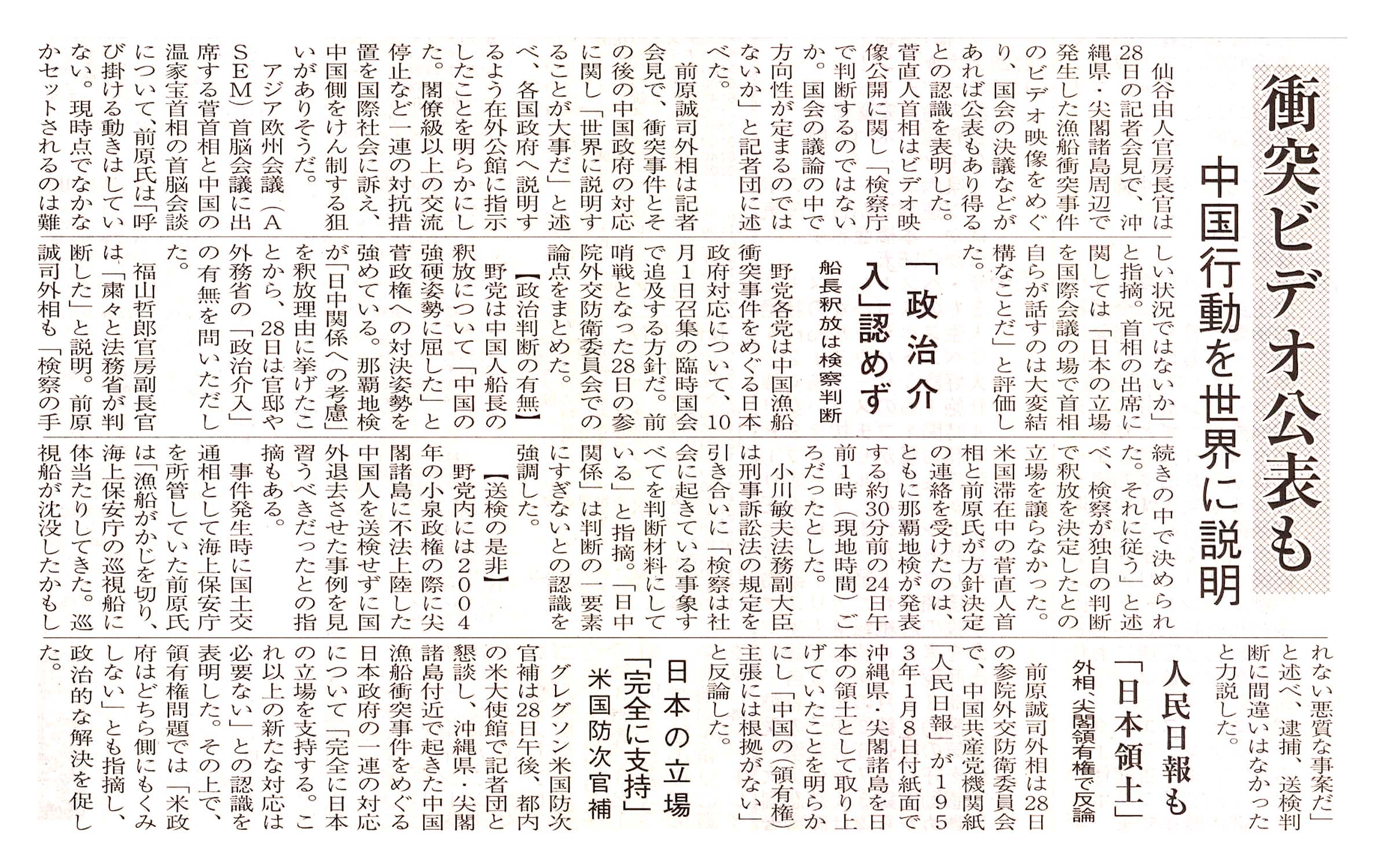 > 衝突ビデオ公開も/中国行動を世界に説明: