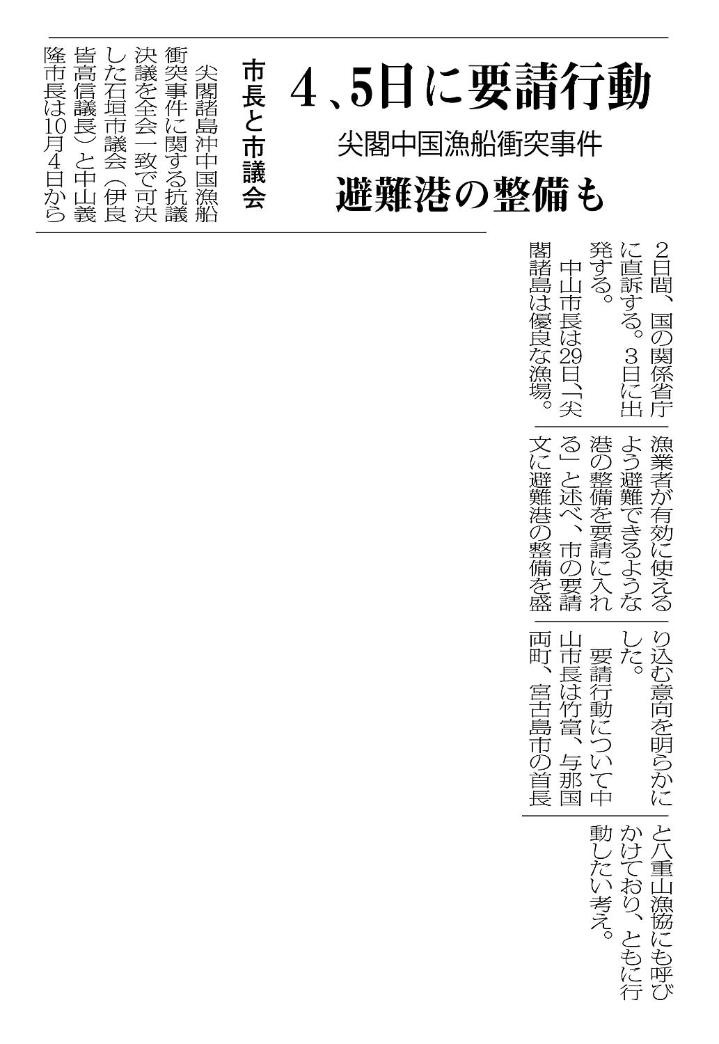 > 4、5日に要請行動/尖閣中国漁船衝突事件/避難港の整備も/市長と市議会: