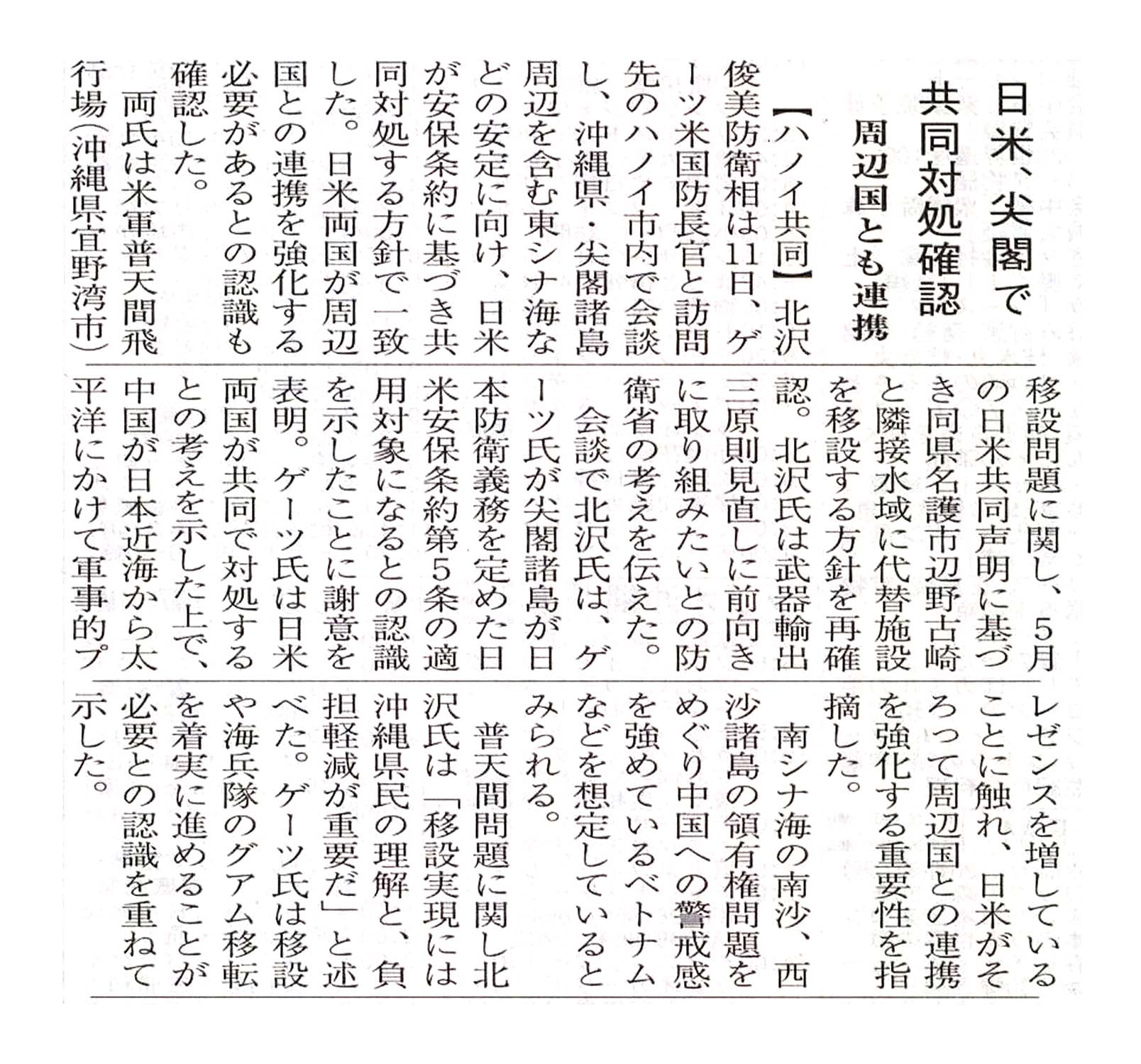 > 日米、尖閣で共同対処確認/周辺国とも連携: