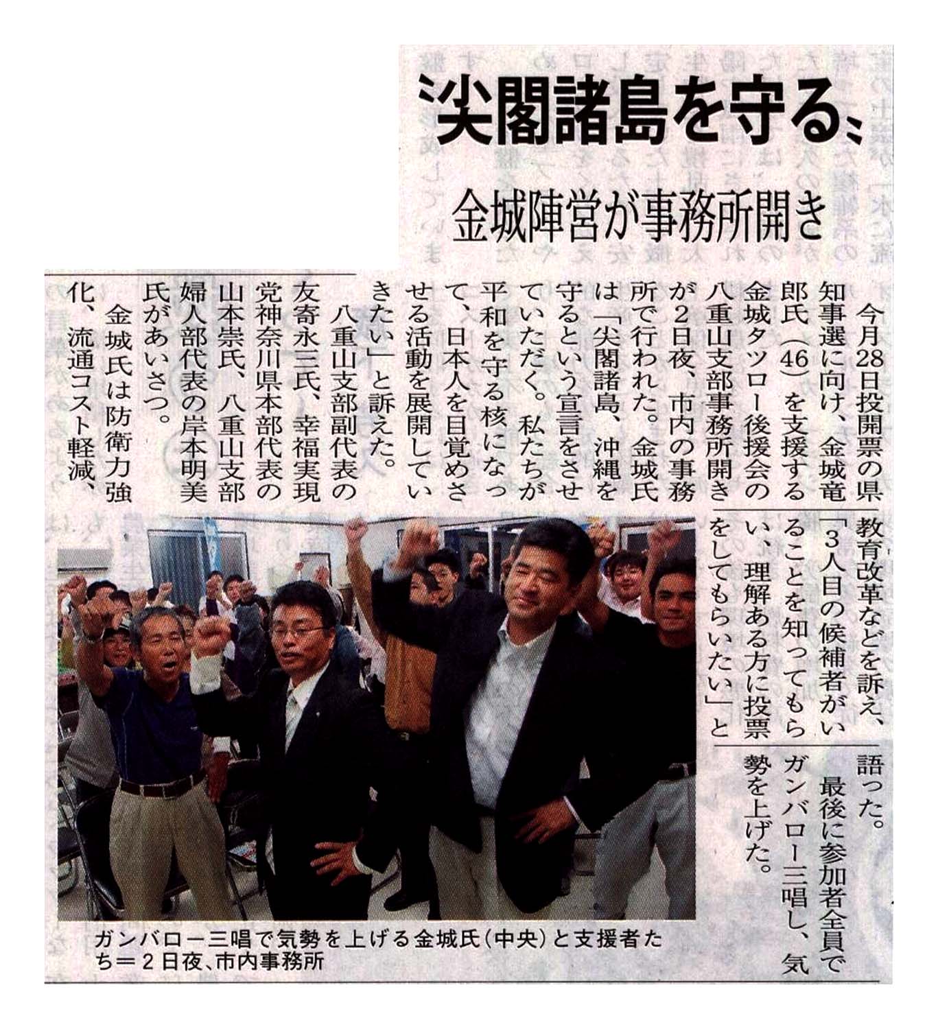> ”尖閣諸島を守る”/金城陣営が事務所開き: