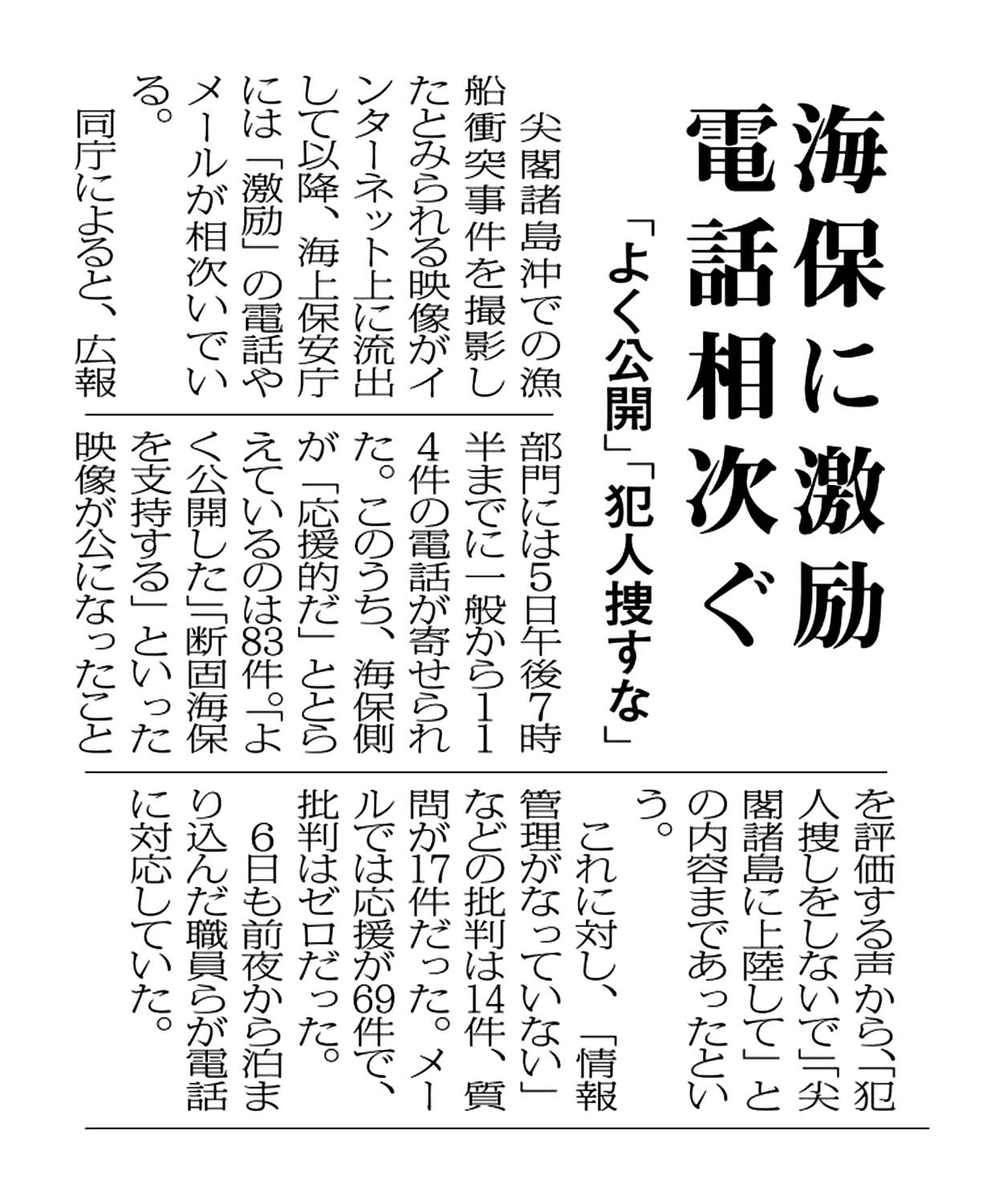 海保に激励 電話相次ぐ 「よく公開」「犯人捜すな」