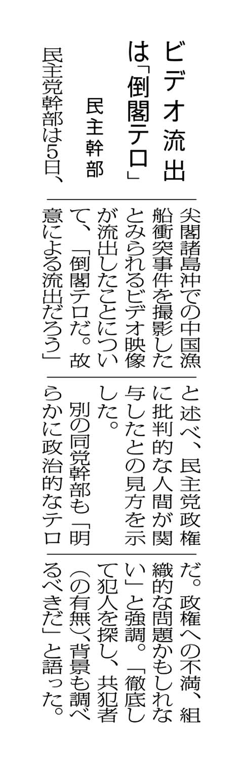 ビデオ流出は「倒閣テロ」/民主幹部