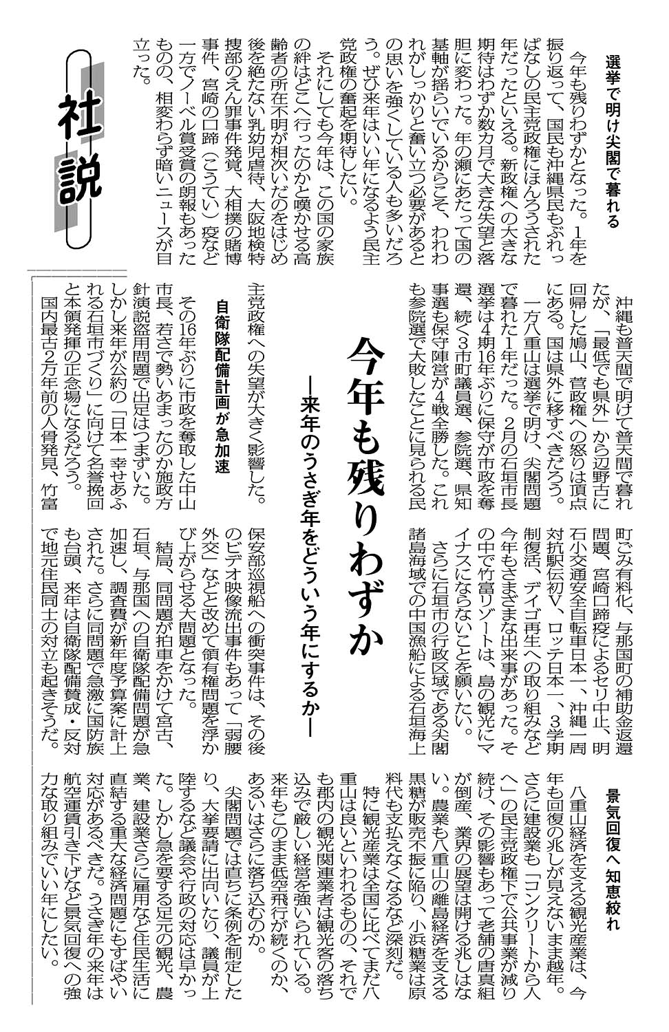 <社説>今年も残りわずか/-来年のうさぎ年をどういう年にするか-