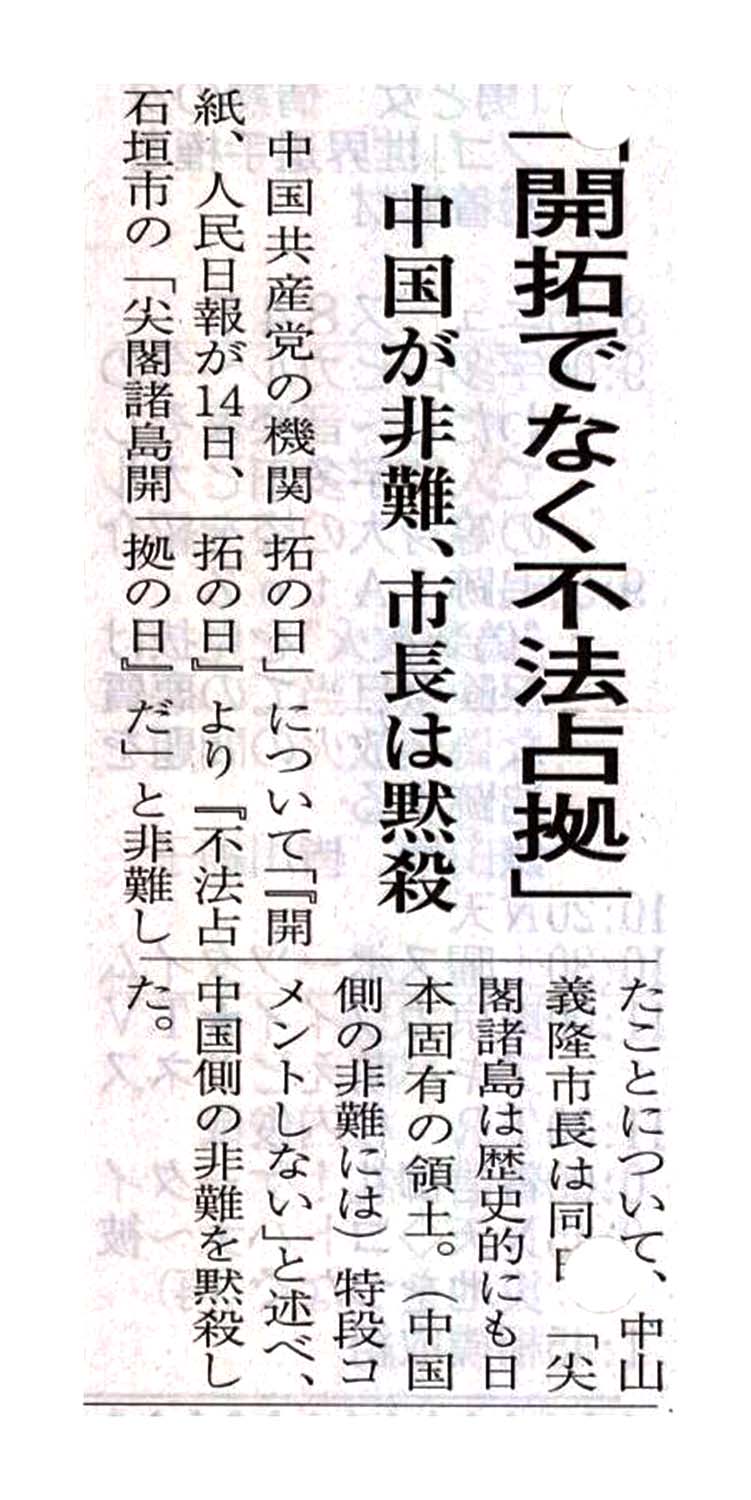 > 「開拓ではなく不法占拠」/中国が批判、市長は黙殺: