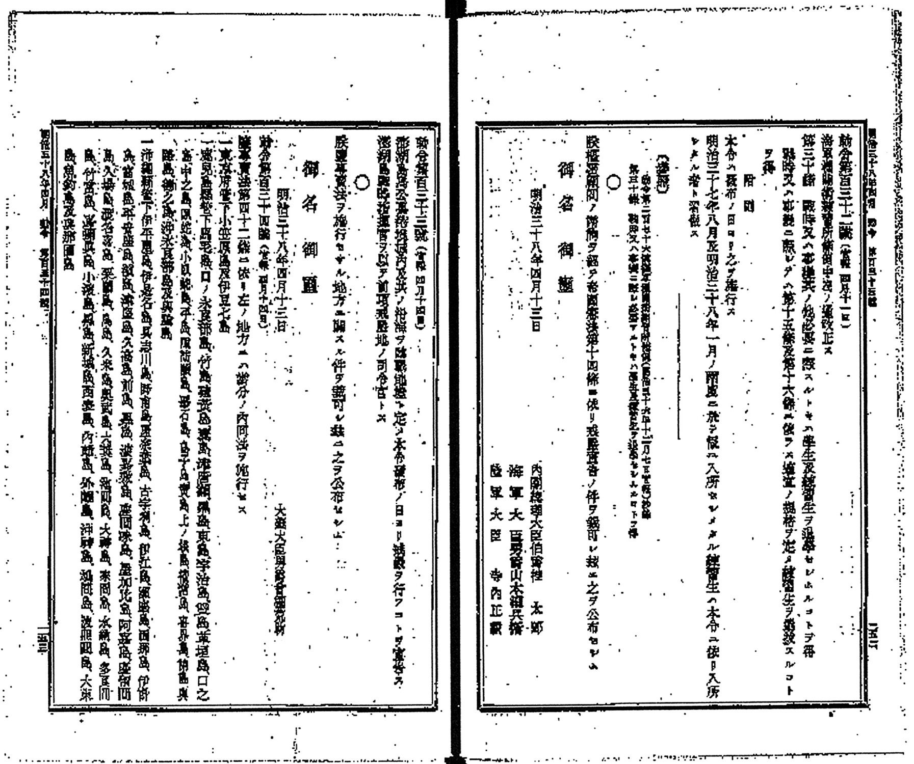 > 官報 (第6533号) -2 朕塩専売法ヲ施行セサル地方ニ関スル件ヲ裁可シ茲ニ之ヲ公布セシム 2 明治38年 1905-04-14: