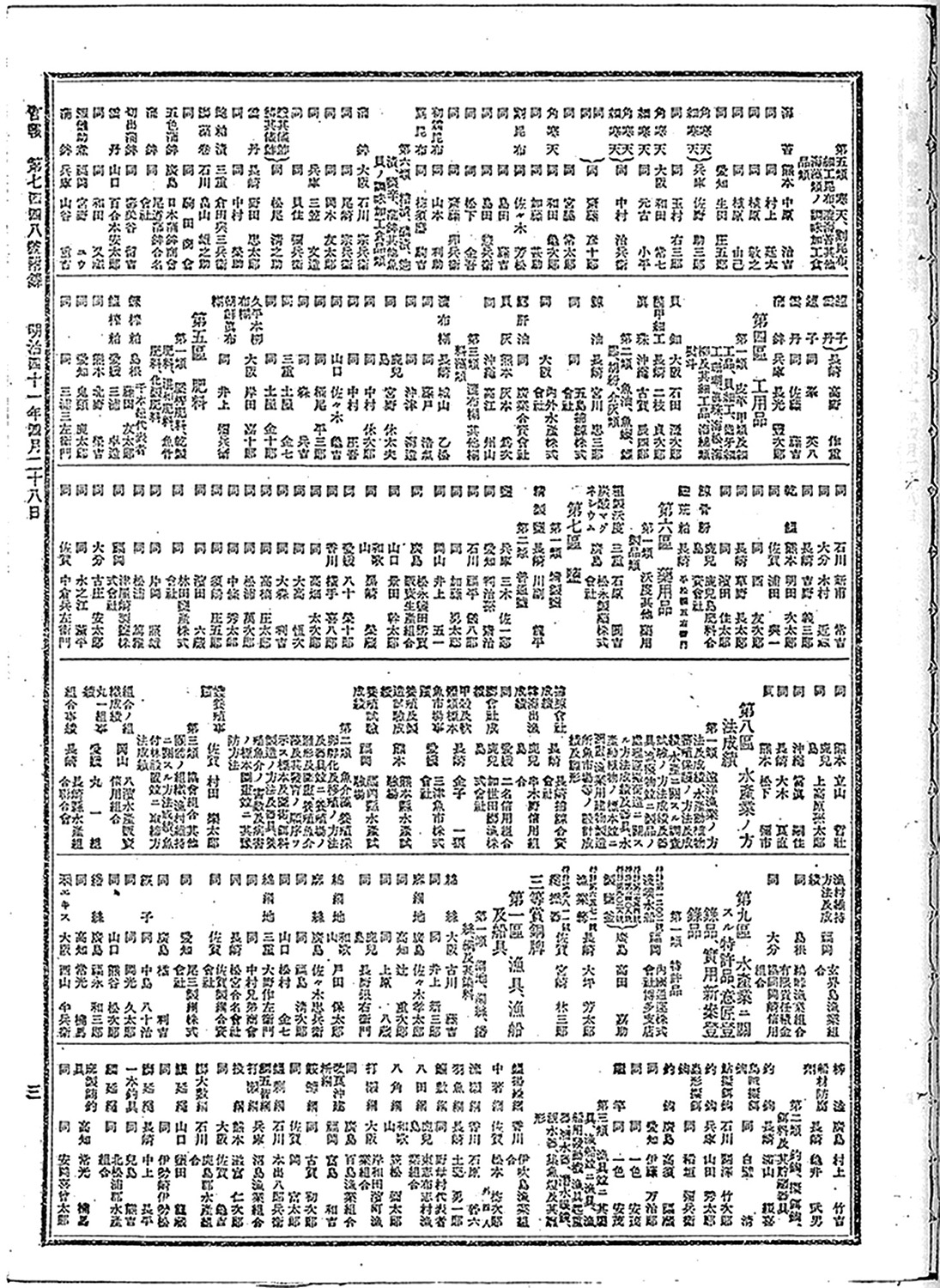 > 官報 (第7448号) -3 第二回関西九州府県連合水産共進会受賞人名 3 明治41年 1908-04-28: